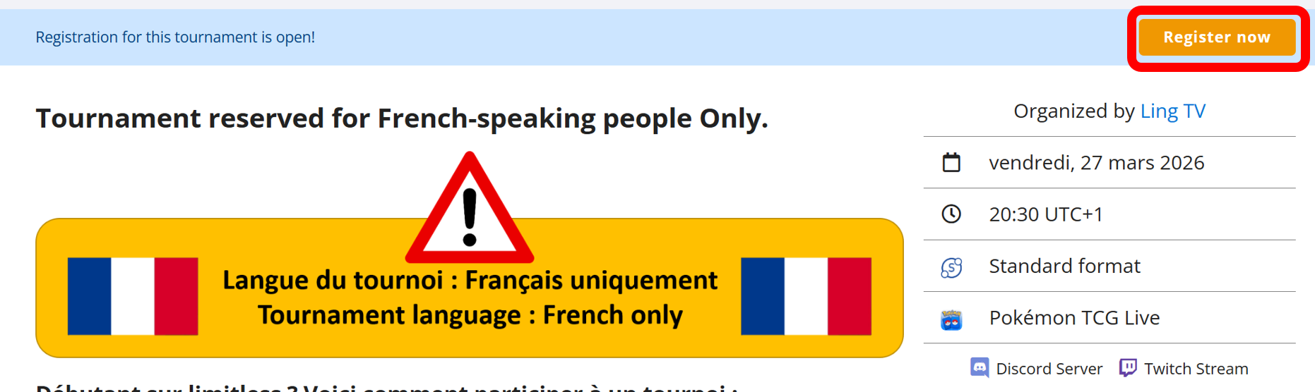 Tournament reserved for French-speaking people Only.