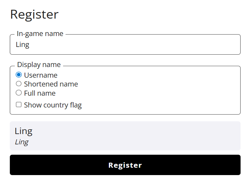 2. Saisie tes informations Pokémon Live et clique sur "Register"